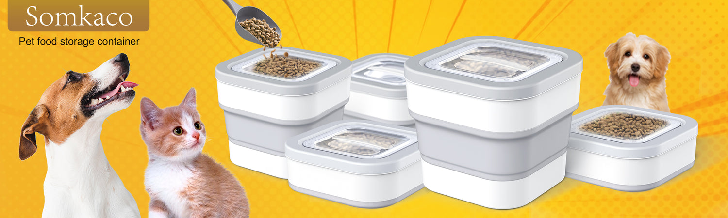 The large dog food container is designed to be collapsible to achieve two capacity modes,you can choose to fold it or not based on your daily storage and save space when appropriate